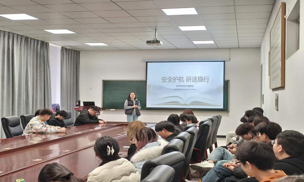 最后,郑琦对本次班会进行总结,再次强调校园安全的重要性,鼓励同学们在守牢安全底线的前提下,提前谋划、积极筹备申博与求职事宜,稳步走好研究生求学之路。此次主题班会的开展,既有效强化了全体研究生的安全意识,也为其学业职业规划提供了切实有效的指导,取得了良好效果。