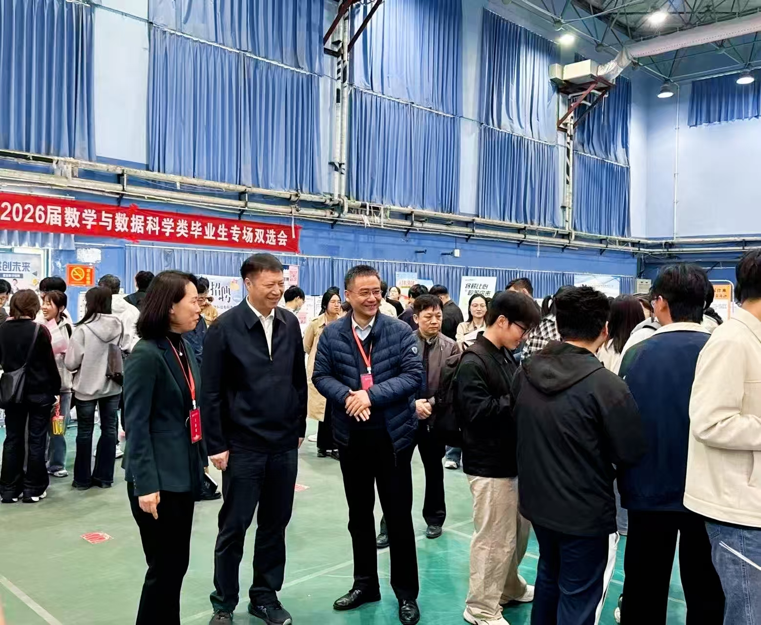 4月9日上午,学校2026届数学与数据科学类毕业生专场双选会在东风校区体育馆顺利举行。本次双选会由学校就业创业指导中心主办,赌博网站 组织承办。校党委副书记杨新宇到场调研,与用人单位和毕业生深入交流,相关职能部门及赌博网站 负责同志陪同。
